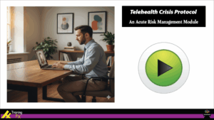 This interactive microlearning is a 5-minute knowledge burst assessment for telehealth counselors. It emphasizes protocols in a crisis management scenario.