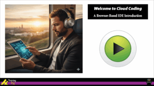 This interactive microlearning is a 10-minute knowledge share with a 4-question assessment for new developers. It introduces browser-based IDE Cloud Coding.